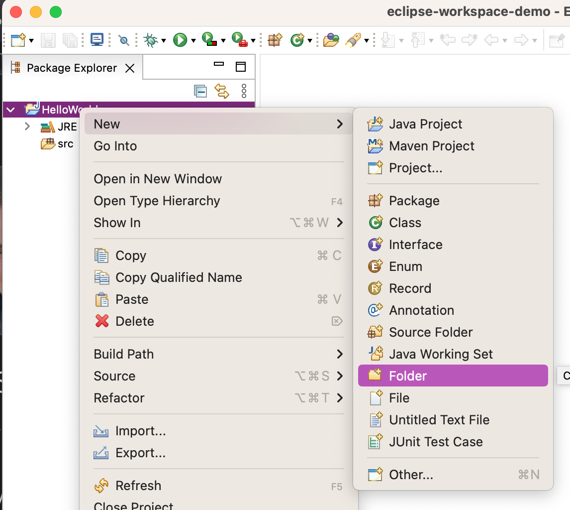 - Right click on the Eclipse project. Choose New -> Folder. Making new folder